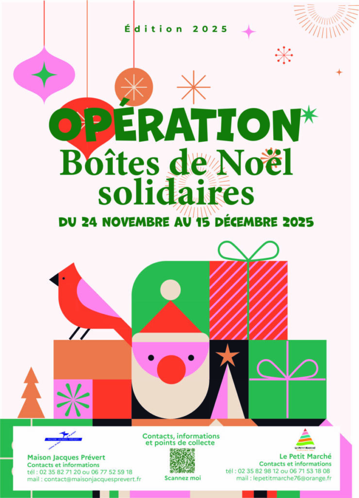 Pour la quatrième année consécutive, la Maison Jacques Prévert et Le Petit Marché relancent l’opération « Boîtes de Noël Solidaires », un rendez-vous désormais incontournable à Dieppe pour répandre un peu de chaleur humaine en période de fêtes. Ce projet participatif, simple et profondément humain, invite chacun à faire un geste concret de solidarité envers les personnes en difficulté du territoire.